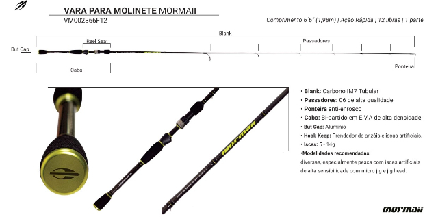 > Vara Mormaii 6’6" (1,98m) 12lb para Molinete (1 Parte) - Amarela